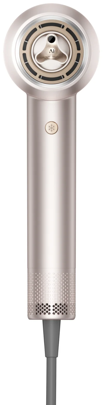 Фен выполнен в золотистом цвете и имеет компактные размеры (7.8 × 10.8 × 25.5 см) при весе 517 г. Подходит для домашнего использования и удобен в хранении.